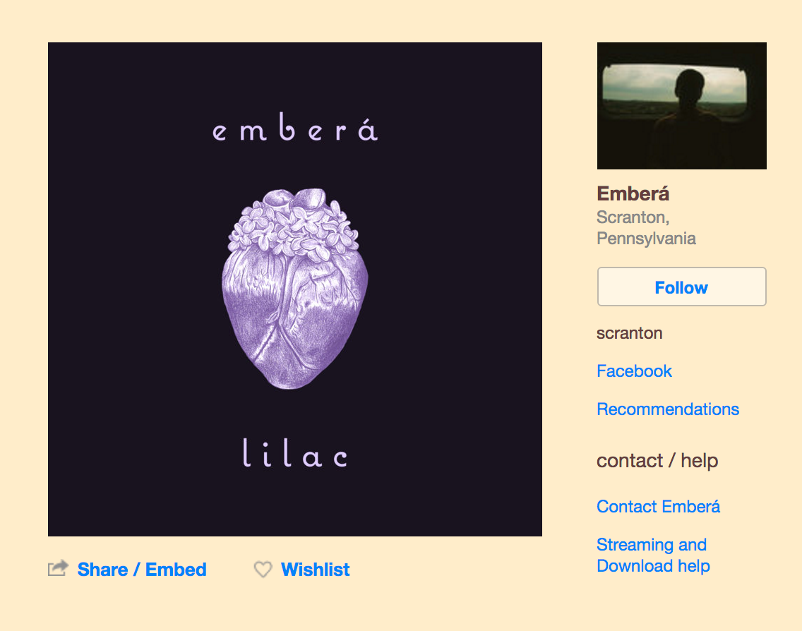 Cover art for Emberá's single, Lilac, released in December of 2016.